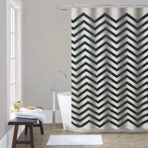 Штора для ванной из полиэстера Zerix SCT-007-180x180 (Узор черно-белый) (ZX4987): Стильный акцент для вашей ванной