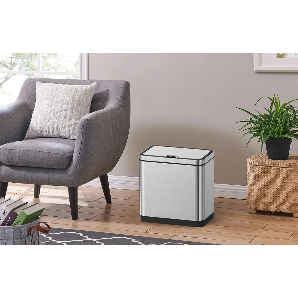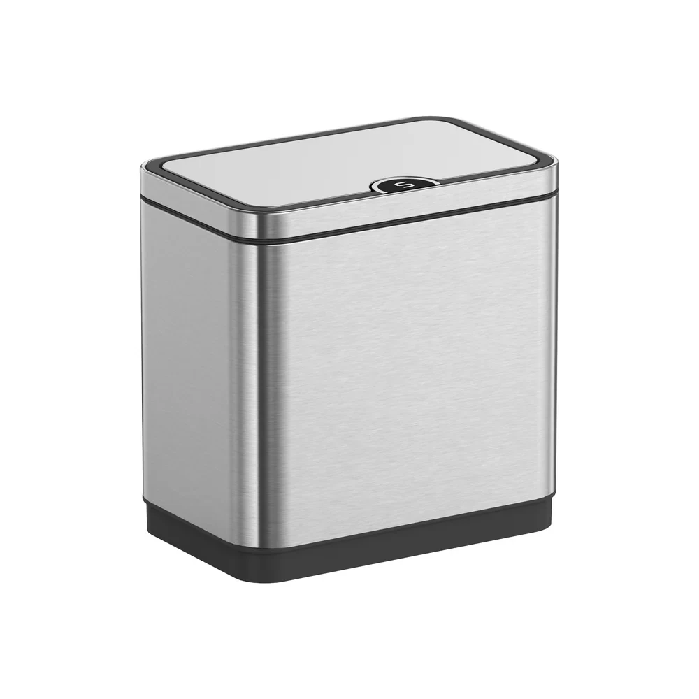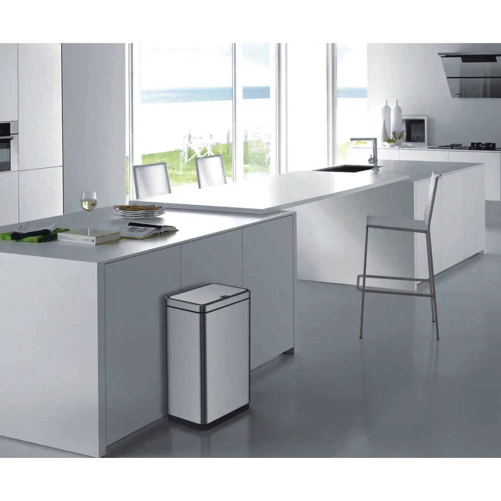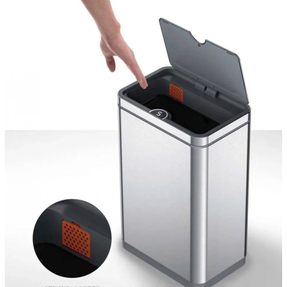 Відро для сміття сенсорне прямокутне KOER модель TC-020212-02 має розмір 350x340x220 мм. Відро для сміття виготовлено з високоякісної нержавіючої сталі. Об'єм виробу становить 12 л. Поверхня відра оброблена за спеціальною технологією, що захищає від відбитків пальців та забруднень. Кришка відра відкривається та закривається плавно та без шуму. Для керування перемикачем кришки у цьому приладі використовується інфрачервоний датчик руху. Кришка відкриється, коли руки або предмети потраплять в зону індукції; кришка буде залишатися відкритою, доки руки або предмети залишаються в зоні індукції; кришка закриється протягом кількох секунд після того, коли руки або предмети залишать зону індукції.