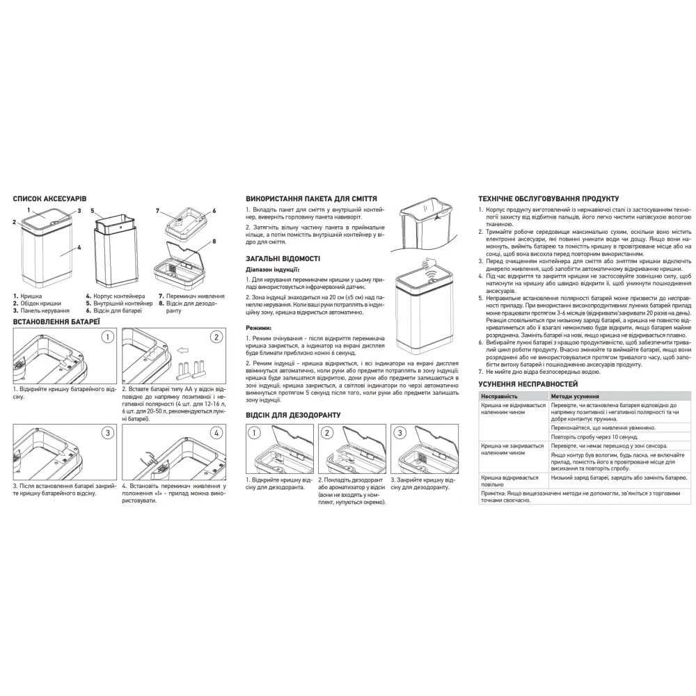 Комплектація:Корпус відра з кришкою автоматичного відкриття, внутрішнє відро