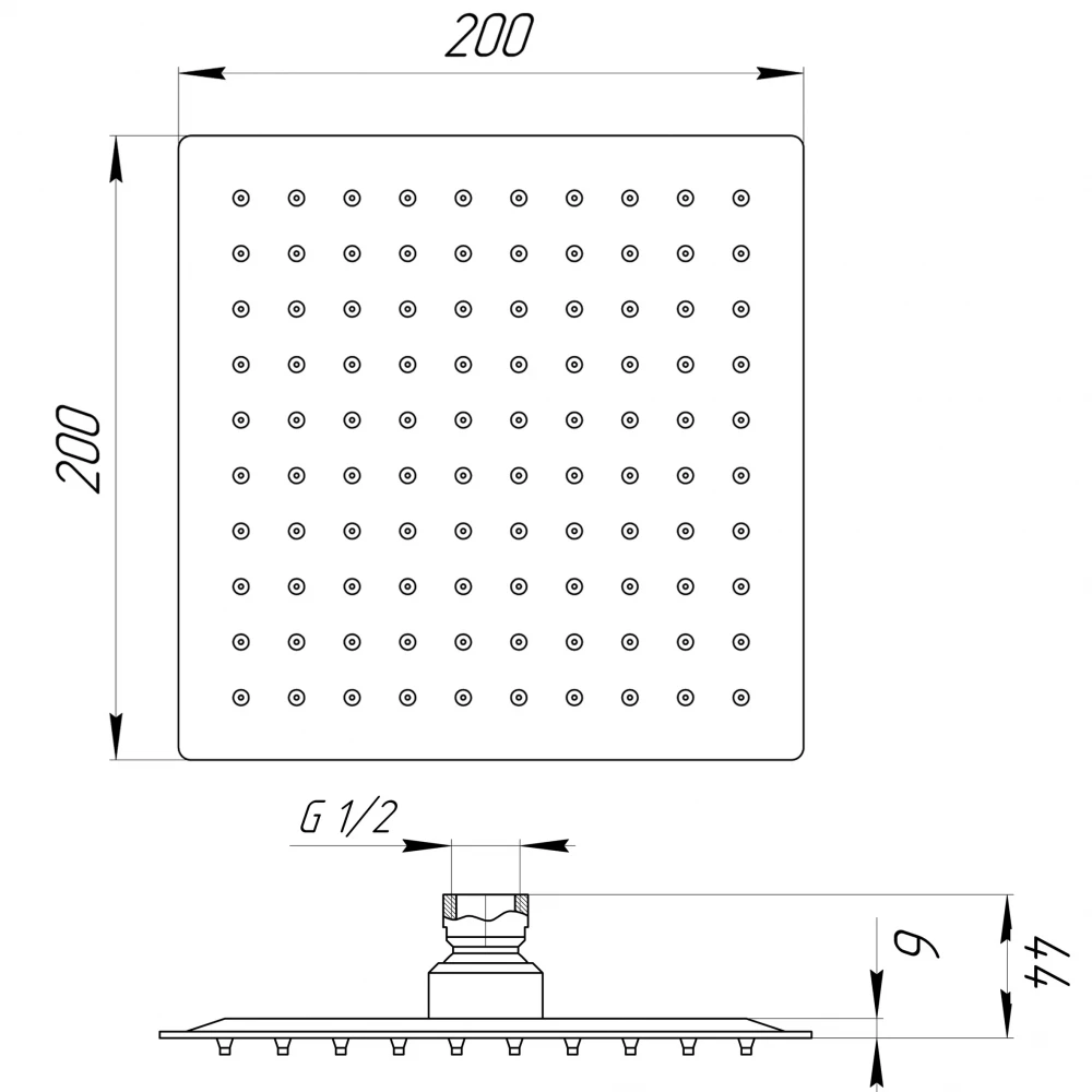 Верхній душ з кульовим шарніром, кут повороту ± 20 °