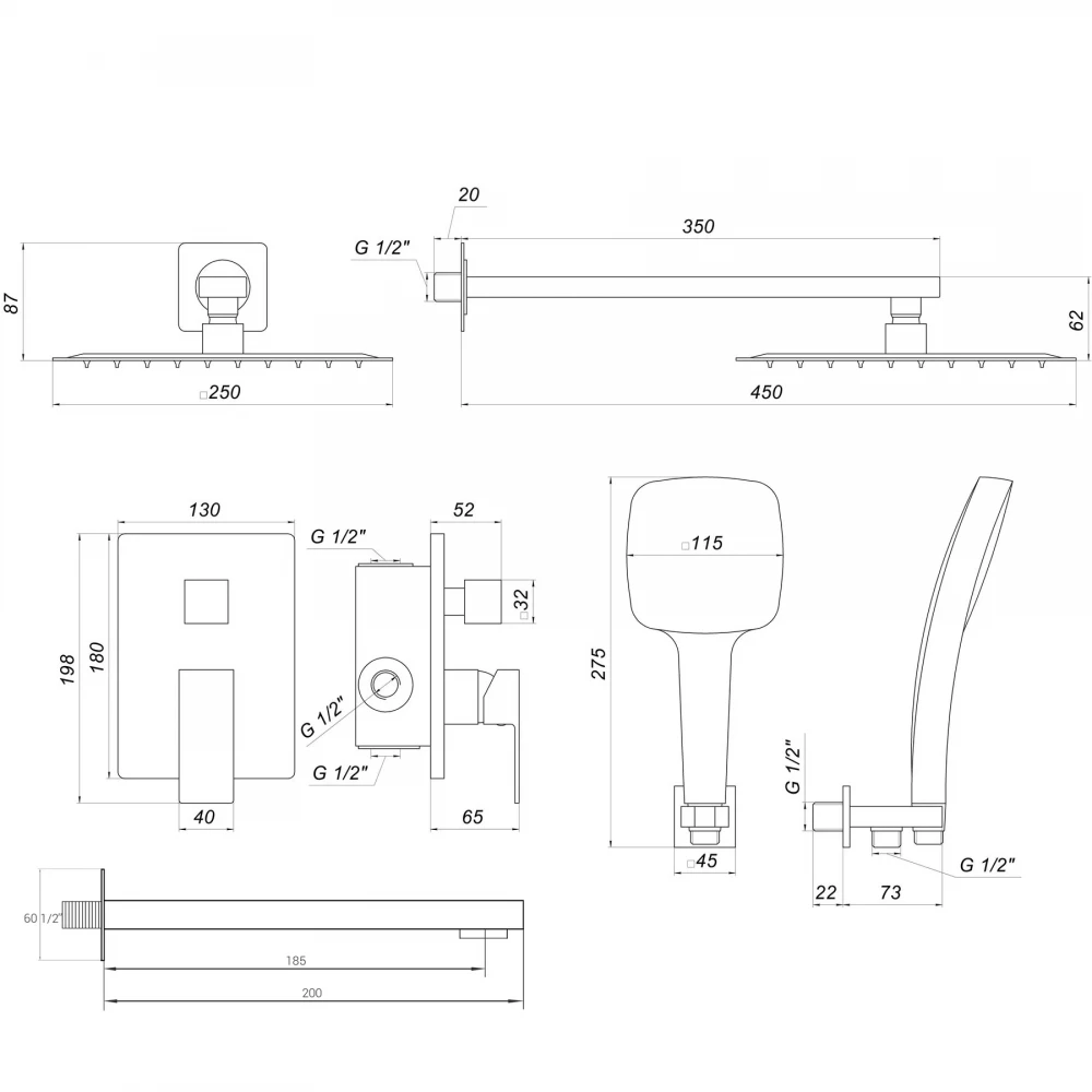 - верхній душ - квадратна лійка 25 см