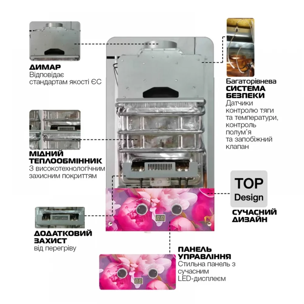 MIXXUS GWH-0410 BASIC GLASS идеально подходит для установки в квартирах, частных домах и дачах, где требуется надежный и экономичный источник горячей воды. Газовая колонка MIXXUS GWH-0410 BASIC GLASS дымоходная 10 л/мин (панель из стекла с рисунком) (WH0025) обеспечивает мгновенный нагрев воды для хозяйственных нужд, душа и других бытовых потребностей. Благодаря стильному дизайну, она гармонично впишется в интерьер ванной комнаты или кухни, добавляя ей современный вид.