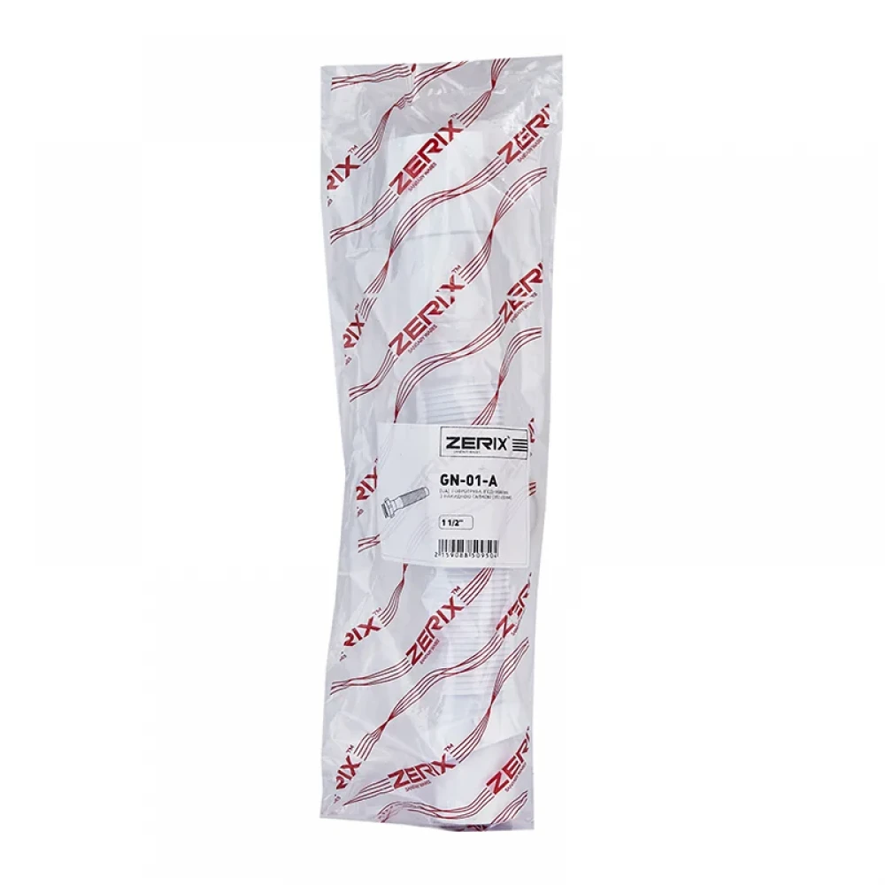 Zerix GN-01-A – это надежное и гибкое решение для подключения сантехнического оборудования. Гофротруба соединительная Zerix GN-01-A с накидной гайкой 1 1/2" (310-650 мм) (ZX5095) предназначена для отвода воды от сифонов умывальников, моек и других сантехнических устройств. Изготовленная из качественного полипропилена, она обеспечивает долговечность и устойчивость к воздействию агрессивных сред. Гибкая конструкция позволяет легко обходить препятствия и подключать слив к канализационной системе даже в труднодоступных местах. Регулируемая длина от 310 до 650 мм делает **гофротрубу Zerix** универсальным решением для различных конфигураций сантехнических узлов. Бренд Zerix известен своим качеством и надежностью в сфере сантехнических комплектующих.