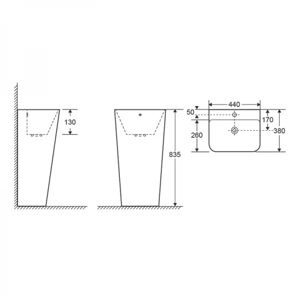 Закажите Раковина моноблок Mixxus STYLE-1101 с отверстием под смеситель и переливом 440х380х830mm (MI6696) сейчас и наслаждайтесь комфортом и стилем в вашей ванной комнате!