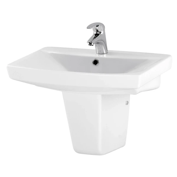 Керамічний умивальник CARINA 55 з отвором під змішувач і переливом. Умивальник чудово поєднується з меблями з серій DAHLIA, MESTA, SMART і напівп'єдесталом із серії CARINA. Умивальник також чудово поєднується з хромованим сифоном.