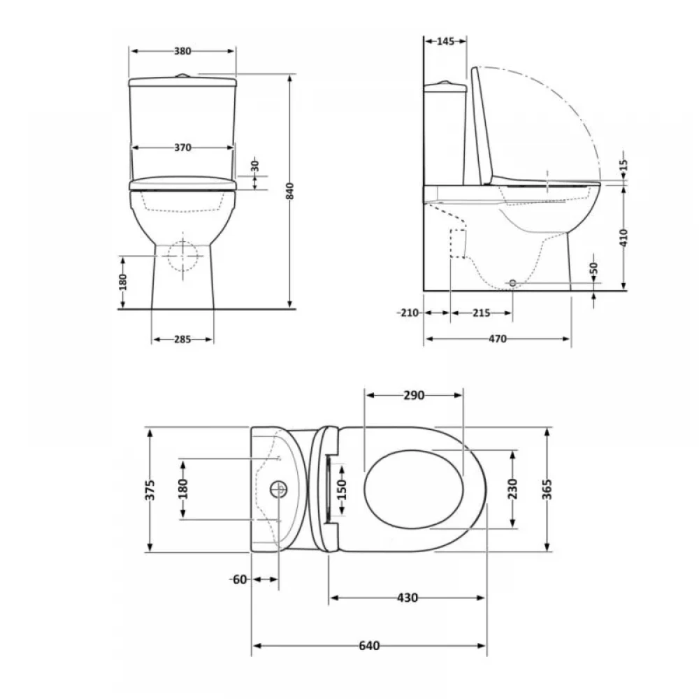 Унітаз: кераміка. Сидіння для унітазу: дюропласт. Бачок: кераміка