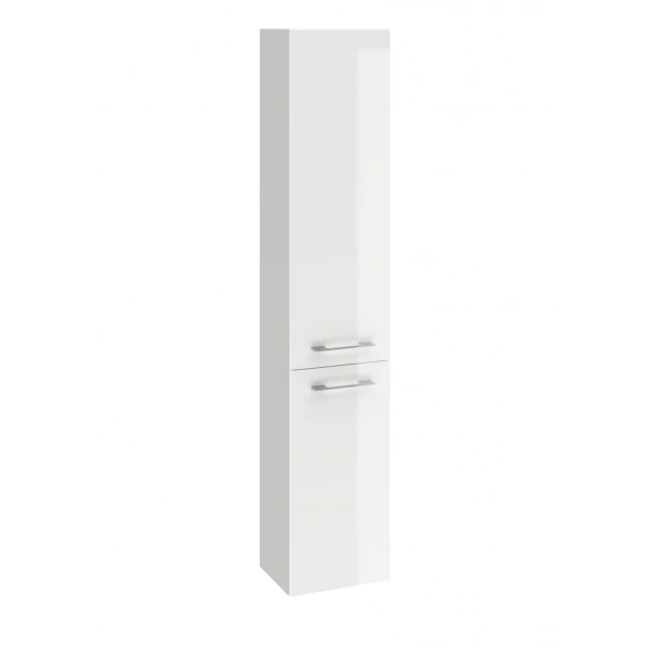 Ємний пенал LARA оснащений міцними петлями. У центральній частині дверей є дві широкі хромовані ручки, які ідеально поєднуються з глянцевим лаком. Модель виготовлена з білого ДСП.