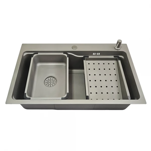 Мийка ITAL виготовлена з високоякісної нержавіючої сталі товщиною 3.0 мм (верхня частина) та 0.8 мм (бічні стінки), що гарантує її міцність та стійкість до деформацій. Покриття PVD Grey не тільки надає мийці стильного зовнішнього вигляду, але й захищає її від подряпин, корозії та інших пошкоджень. Розміри мийки (750x460x215 мм) забезпечують достатньо місця для комфортного миття посуду та продуктів. У комплекті з мийкою йде сифон, дозатор миючого засобу та два практичних кошики для зручного миття та сушіння овочів та фруктів. Бренд ITAL відомий своєю надійною сантехнікою, що поєднує інноваційні рішення та сучасний дизайн.
