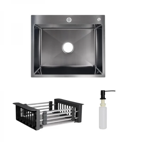 Комплект Lidz Handmade H6050B Мийка для кухні інтегрована BlackPVD у комплекті з дозатором + Lidz K01B Корзина для кухонної мийки: Елегантність та практичність в одному наборі