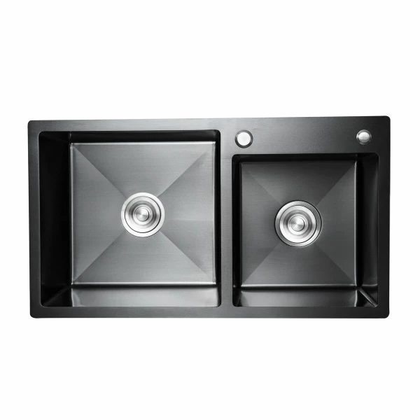 Кухонна мийка 78*43 PVD чорна на дві чаші Platinum Handmade HDB (круглий сифон, 3.0/0.8) це відмінне стильне рішення для кухні. Лаконічний дизайн прямокутної форми з двома чашами добре пасує різним інтер’єрам кухні та робить мийку функціональною.