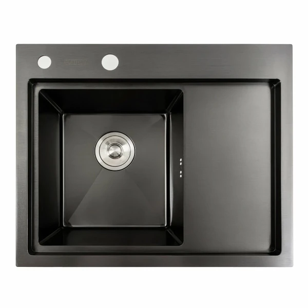 Оновіть вашу кухню разом з Кухонною мийкою чорною PVD 58*48 L Platinum Handmade (два отвори, круглий сифон 3,0/0,8)