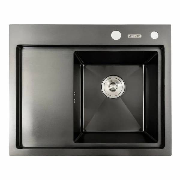 Оновіть вашу кухню разом з Кухонною мийкою чорною PVD 58*48 R Platinum Handmade (два отвори, круглий сифон 3,0/0,8)