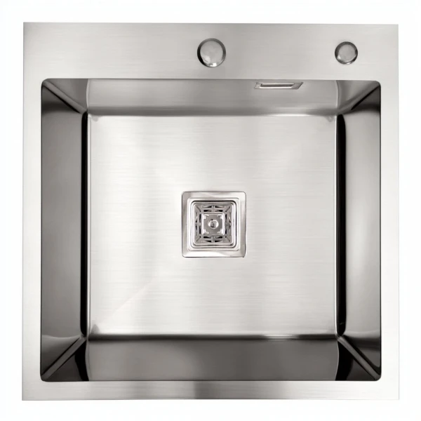 Кухонна мийка Platinum Handmade 50*50 (500x500x220 мм) HSB це відмінне стильне рішення для кухні невеликих розмірів. Лаконічний дизайн прямокутної форми добре пасує різним інтер’єрам кухні.