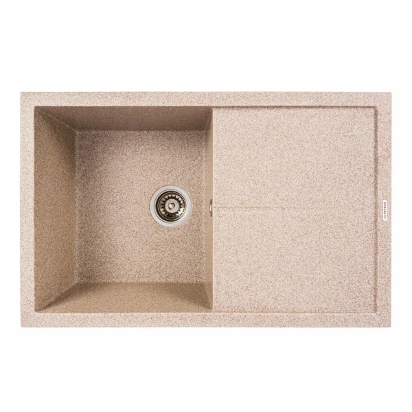 Гранітна матова мийка VALESO MAGNUM 7950 карамель — ідеальне поєднання стилю, практичності та довговічності. Оснащена однією основною чашею та зручним крилом для сушіння, вона створена для ефективного щоденного використання. Розміри мийки 790×500 мм дозволяють легко інтегрувати її в стандартну кухонну стільницю. Гранітне покриття стійке до подряпин, температурних перепадів і побутової хімії. Вишуканий білий колір з крапками додає легкості та сучасності інтер’єру кухні.