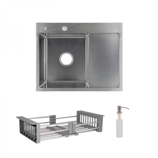 Закажите Комплект Lidz Handmade H6350R Мойка для кухни интегрированная крыло справа Brushed в комплекте с дозатором + Lidz K01G Корзина для кухонной мойки сейчас и наслаждайтесь комфортом и удобством в вашей кухне!