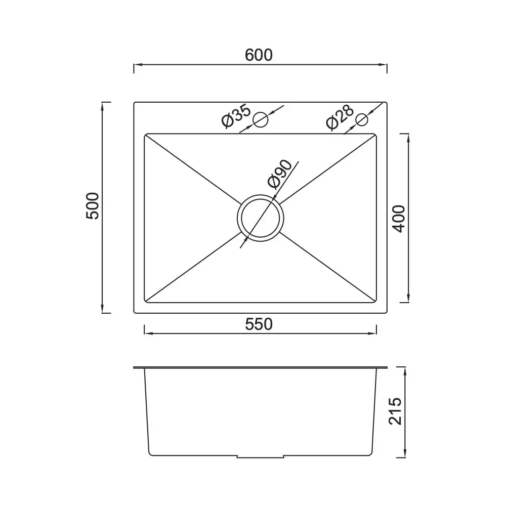 - Оптимальный размер 600x500 мм: Достаточно пространства для комфортного мытья посуды и продуктов.
