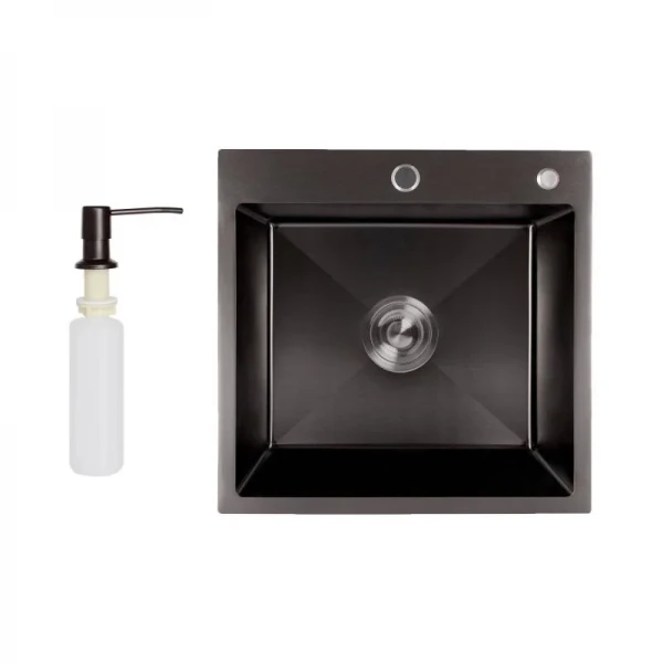 Мойка для кухни интегрированная Lidz Handmade H5050B (LDH5050BPVD43619) Brushed Black PVD 3,0/1,0 мм: Элегантность и функциональность в каждой детали