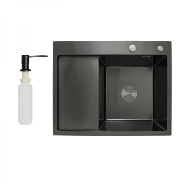 Мойка для кухни интегрированная Lidz Handmade H6350BL крыло слева (LDH6350BRUL45589) Brushed Black PVD 3,0/1,0 мм: Идеальное сочетание стиля и функциональности