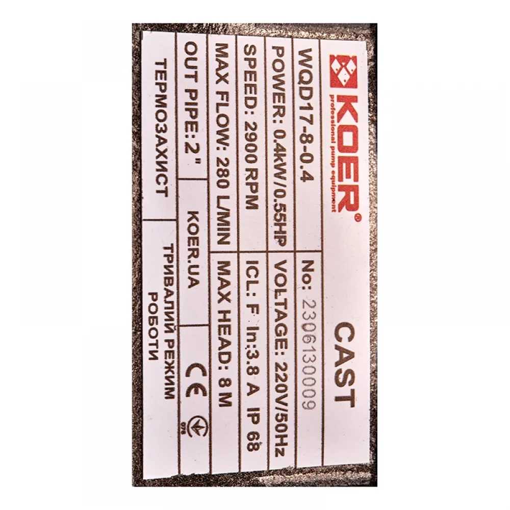 Замовте Насос дренажно-фекальний Koer WQD 17 (корпус чавун) (KP2892) зараз та забудьте про проблеми з відкачуванням води!