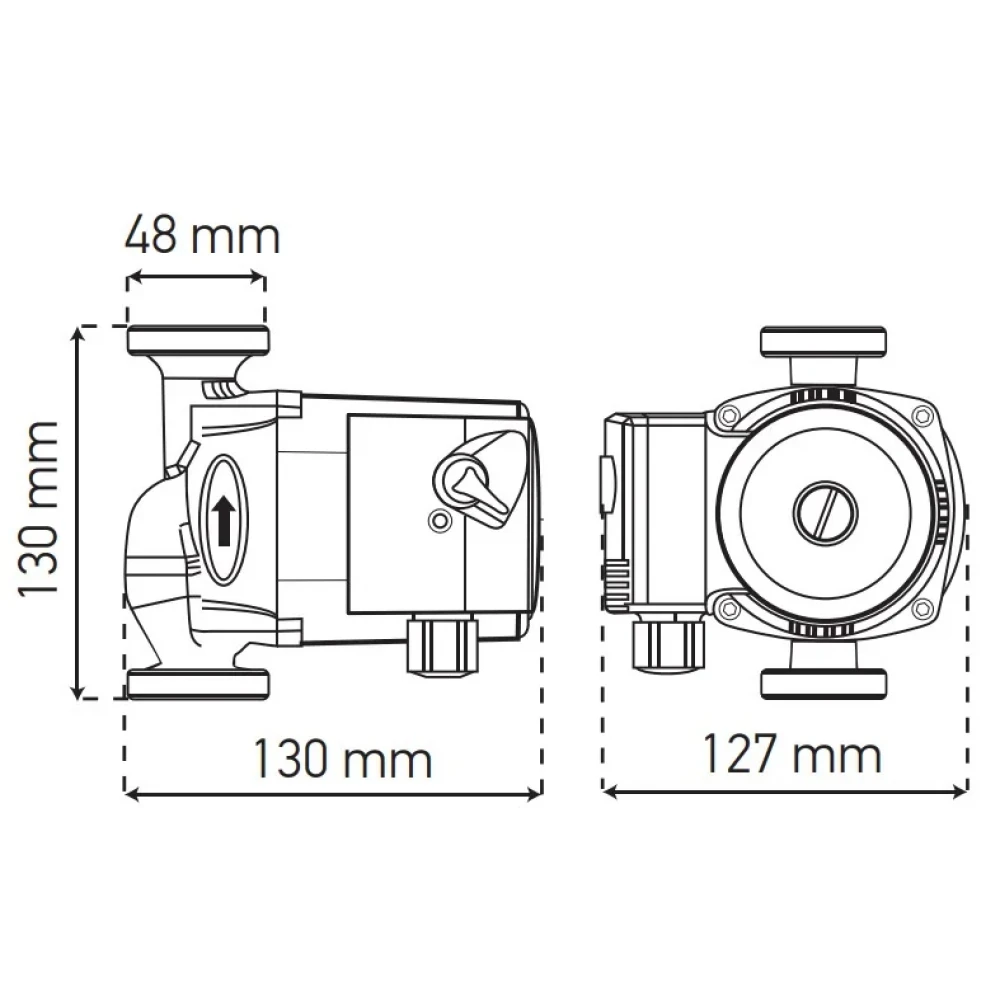- Встановіть насос на трубопровід згідно з напрямком потоку, вказаним на корпусі.