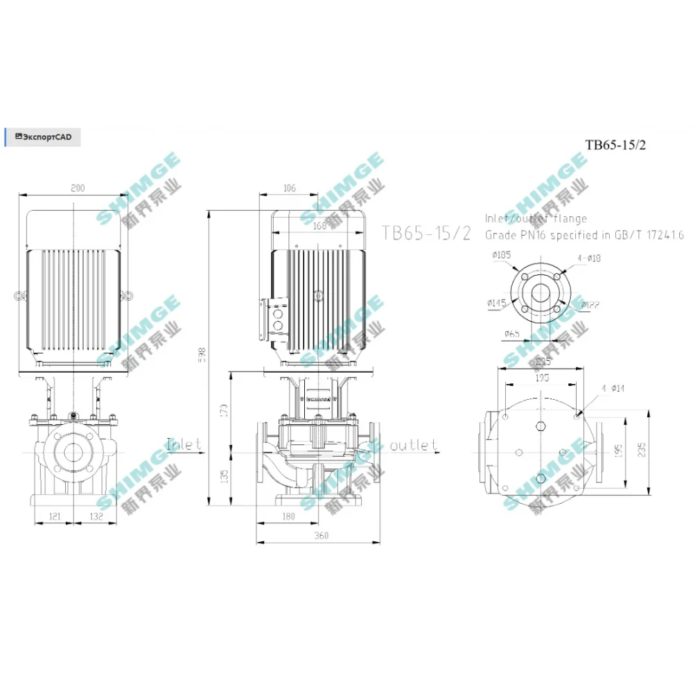 Насос циркуляційний з сухим ротором. ЖИВЛЕННЯ 380 В. Має конструкцію центробіжного насоса, але розрахований на температуру до 90°C і максимальний тиск до 16 бар. Мідна обмотка, клас ізоляції F. Корпус насосної частини чавунний з електрофорезним покриттям. Робоче колесо - чавун. Вал виконано з нержавіючої сталі. Особливість моделі полягає у можливості заміни механічного ущільнення без повного демонтажу насоса. Зворотніх фланців в комплекті нема. Можуть використовуватися для циркуляції гарячої або холодної води, наприклад, в: системах опалення, системах охолодження, системах централізованого теплопостачання, мийних системах, промислових системах, системах іригації в сільському господарстві.