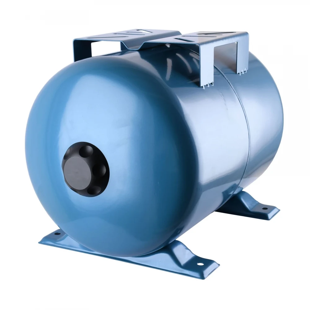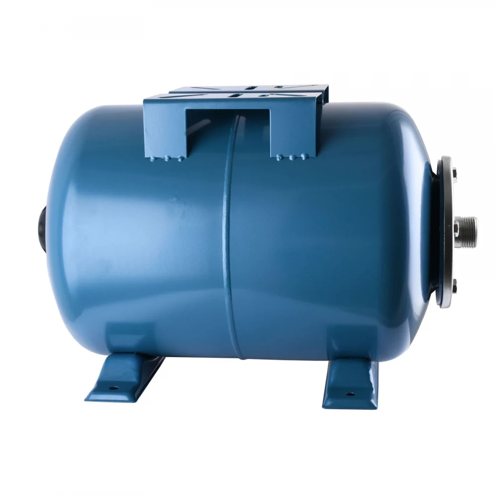  Усередині гідроакумулятор розділений змінною мембраною на дві камери: водяну і повітряну. У повітряній камері знаходиться попередньо закачаний під тиском повітря. Контакт води з металевими поверхнями корпусу мембранного бака неможливий, так як вся вода надходить у водяну камеру - мембрану, матеріалом якої є зносостійкий гумовий матеріал, не сприйнятливий до дії бактерій і задовольняє всім гігієнічним і санітарним нормам для питної води. З боку повітряної камери в корпусі мембранного бака розташовується пневмоклапан, призначений для регулювання тиску повітря.