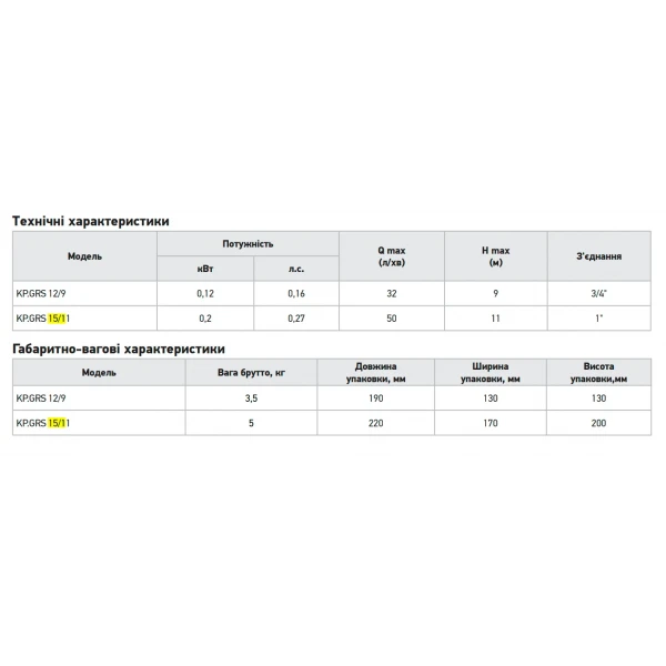 Насос повышения давления Koer KP.GRS 15/11 (с кабелем и гайками) (KP3136): компактное решение для стабильного водоснабжения