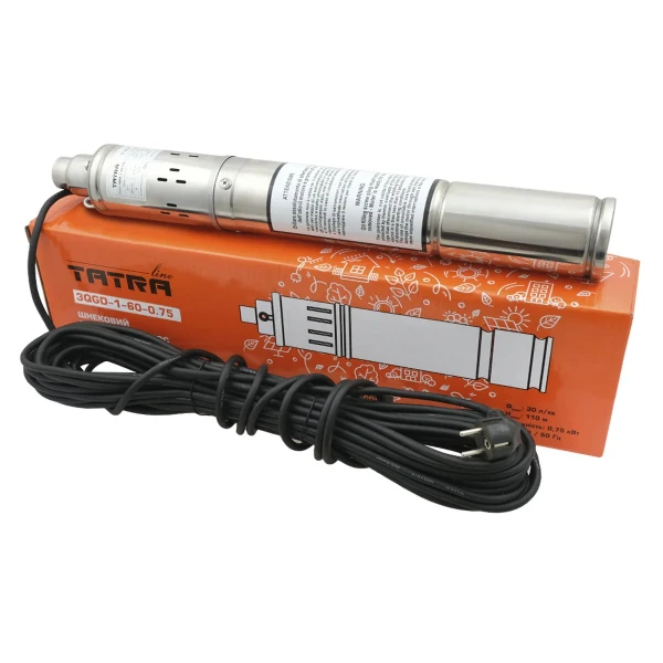 Закажите Скважинный шнековый насос TATRA-line 0.75кВт, Q.max 30л/мин., H.max 110м., 3QGD-1-60 сейчас и наслаждайтесь бесперебойным водоснабжением!