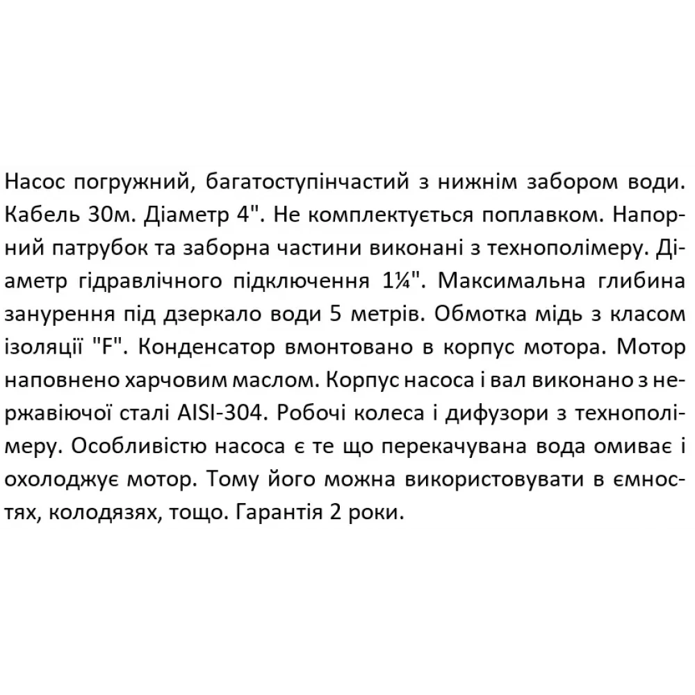 - Подходит для скважин диаметром от 4 дюймов