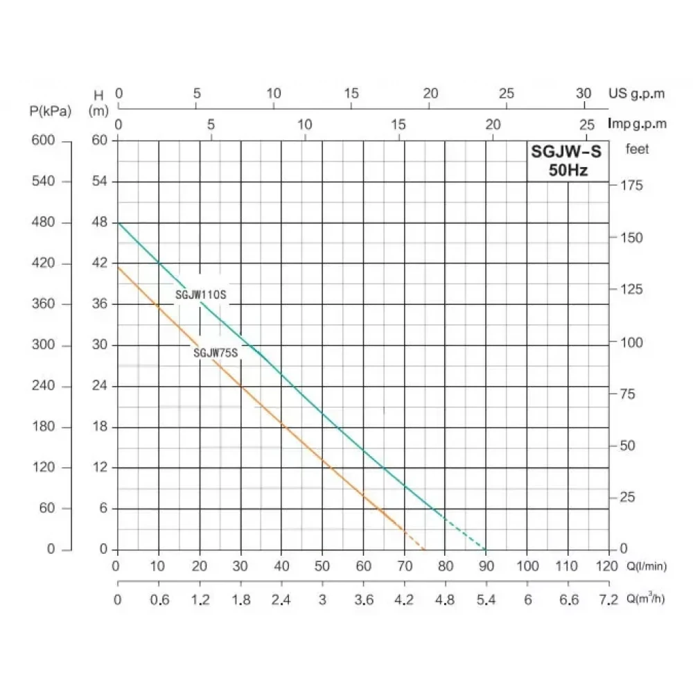 - Высокая производительность (до 90 л/мин) и напор (до 48 метров).