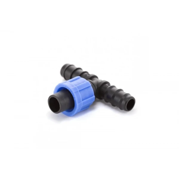 Простая регулировка: Широкий ход гайки позволяет надежно закрепить капельную ленту, обеспечивая герметичность соединения.