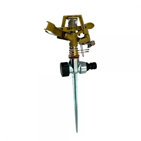 Дощувач імпульсний SUPERPLAST UKR-058 металевий з кілочком під конектор – це надійне рішення для забезпечення ефективного та рівномірного поливу вашого саду, газону або городу. Цей якісний фітинг для поливального шланга від SUPERPLAST, відомого виробника сантехніки, гарантує оптимальний розподіл води та довговічність у використанні.
