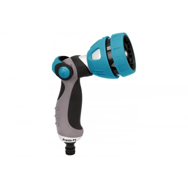 Цей металевий поливальний пістолет, розроблений для фермерів та садівників, є ідеальним рішенням для ефективного використання води. Він підходить для садових шлангів діаметром 1/2", 5/8" та 3/4" дюйма завдяки стандартним конекторам. Рекомендований робочий тиск – 2-4 атмосфери. Presto-PS витримує високі навантаження та стійкий до механічних пошкоджень, впливу ультрафіолету та водорозчинних добрив. Престо-PS пропонує 7 режимів поливу: жорсткий струмінь, проливний дощ, конус, туман, душ, плоский вертикальний та плоский горизонтальний, що дозволяє налаштувати полив під будь-яку культуру. Завдяки ергономічній прогумованій ручці та фіксації курка, полив стане комфортним та невиснажливим, навіть на великих площах. Надійний адаптер для поливу з металевим корпусом.
