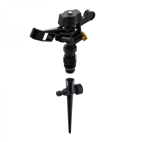 Зрошувач імпульсний на 2 форсунки Presto-PS (RS 5022-7) b> використовується для зрошення газонів середньої та невеликої площі , підійде так само і для вирощування овочів, квітів та всіх видів розсади. Найбільш поширеним видом застосування даного зрошувача є полив зернових, люцерни, буряків, листових овочів, бобових культур і картоплі. На відміну від інших видів ці дощовики подають воду короткими імпульсами з невеликим тимчасовим інтервалом, вбудований маятниковий механізм розбиває струмінь на частини і створює ефект близький до природного дощу. Дана модель покриває ділянку круглої форми до 12 метрів в діаметрі з максимальною площею поливу до 113 м ^ 2. Витрата води при тиску 2 атмосфери становить 0,5 м ^ 3 / год. Плавне постійне обертання зі швидкістю 1 оборот за 40 секунд забезпечує рівномірний полив. Можливе підключення як до гнучкого садового шлангу з установкою на переносну триногу або комплектну ніжку, так і стаціонарна установка на магістральну трубу за допомогою фітингів з внутрішнім різьбленням 12 мм (1/2 "). Рекомендований робочий тиск в системі від 1,75 до 4, 5 атмосфер. Мінімальний тиск необхідне для роботи зрошувача становить 0,5 атмосфер. Виготовлений Зрошувач з високоякісного, стійкого до впливу ультрафіолетового випромінювання і добрив пластика. При виробництві використовуються тільки первинні матеріали. p> Варіант стаціонарного використання b> u> Продуктивність в залежності від тиску b> u> p> Відгуків про цей товар ще не було. Немає питань про даний товар, станьте першим і задайте своє питання.