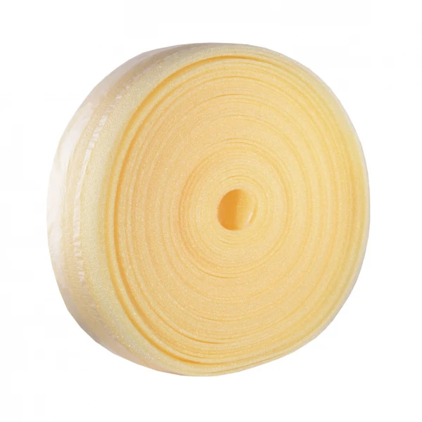 Демпферная лента изготовлена из вспененного полиэтилена. С одной стороны у нее защитный фартук, у которого двойное назначение. Он защищает ленту от агрессивного бетона, и в то же время закрывает щели между лентой и теплоизоляцией. Демпферная лента, цена на которую сравнительно не высока, достаточно долговечна