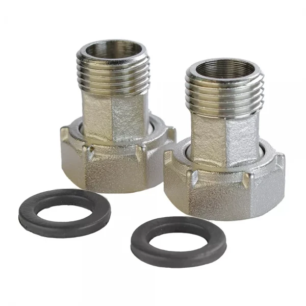Комплект присоединительный для счетчиков VLMZ – это надежное и долговечное решение для подключения счетчиков воды к водопроводной системе. Изготовленный из высококачественной латуни с никелированным покрытием, он обеспечивает герметичность и устойчивость к коррозии, гарантируя долгий срок службы вашей сантехники. Данный комплект (артикул L-96) предназначен для соединения счетчиков с резьбой 3/4 дюйма к трубам с резьбой 1/2 дюйма.