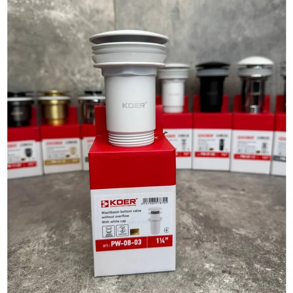 Донний клапан з функцією Click-Clack, підходить для умивальників без переливного отвору. Система Click-Clack працює за принципом простого натискання: одне натискання закриває клапан, блокуючи злив води, а повторне натискання відновлює відтік. Донний клапан виготовлений із високоякісної латуні, тому забезпечує надійну роботу протягом тривалого часу. Автоматичне керування забезпечує легкість у користуванні для набирання й зливу води. Виріб дозволяє перекрити злив у разі потреби та використовувати раковину як таз. Діаметр підключення: 1 1/4''. Універсальне з’єднання зі стандартним кроком різьби підходить до будь-якого сифона. Дизайн – відповідає останнім тенденціям, виглядає дуже елегантно та чудово вписується у сучасну ванну кімнату. Донний клапан для раковини оснащений кришкою білого кольору, що дозволяє поєднувати його з раковинами білого кольору.