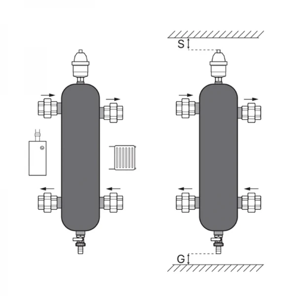 Koer KR.S1032 ідеально підходить для використання в системах опалення приватних будинків, котеджів, а також у невеликих комерційних приміщеннях. Гідрострілка Koer KR.S1032 4/2 (з воздухоотвод. І дренаж. краном) 1"НР SUS304 (KR2959) дозволяє підключити декілька опалювальних контурів, таких як радіатори, тепла підлога, бойлер непрямого нагріву, і забезпечити їх стабільну та незалежну роботу. Вона особливо корисна в системах з великою кількістю споживачів тепла або з різними температурними режимами.
