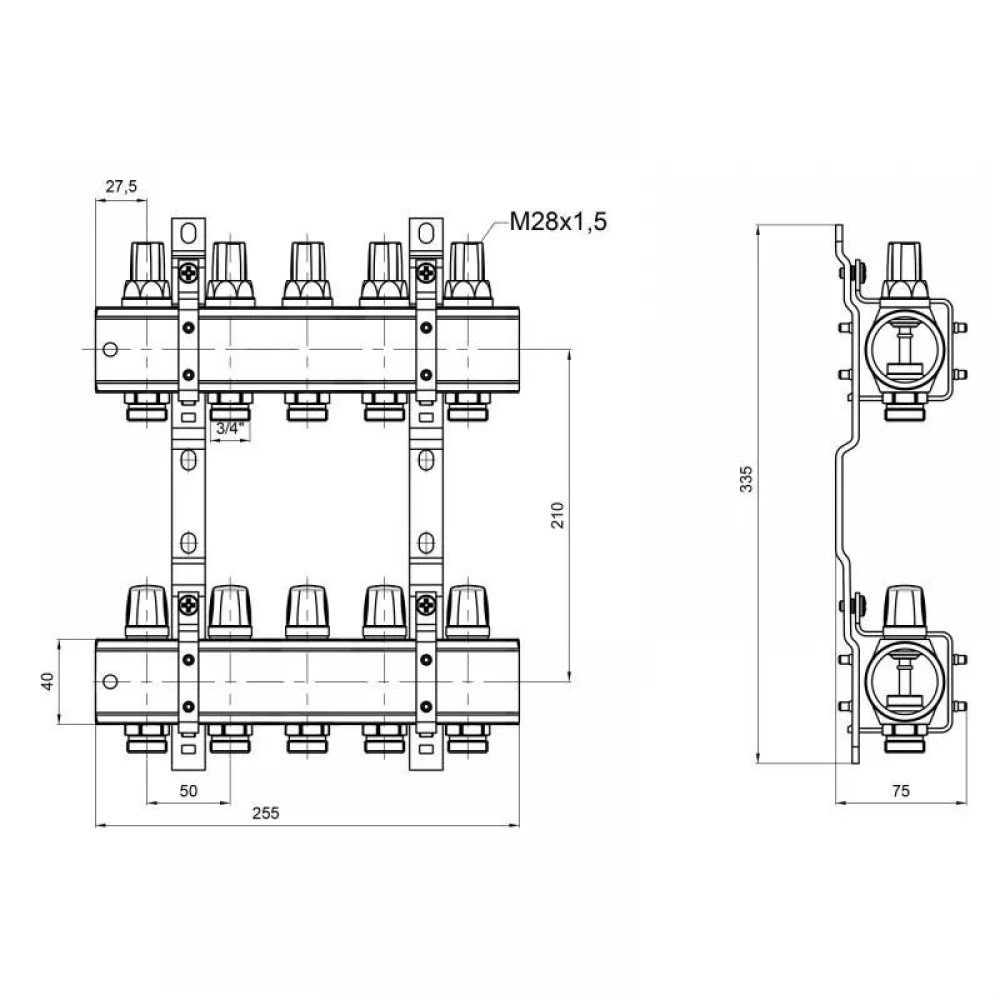 Колектор Icma 1" 5 виходів, без витратоміра №K005: надійний розподіл тепла у вашому домі