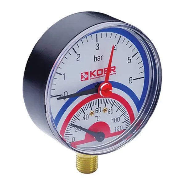 Термо-манометр радиальный (KOER KM.801R) (0-6 bar), D 80мм, 1/4''-1/2'' (KR0218): Точный контроль температуры и давления