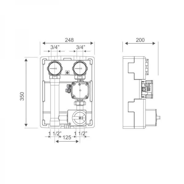 Насосная группа Icma 1" 1/2 подключение справа, без насоса №R001: Эффективное управление отоплением