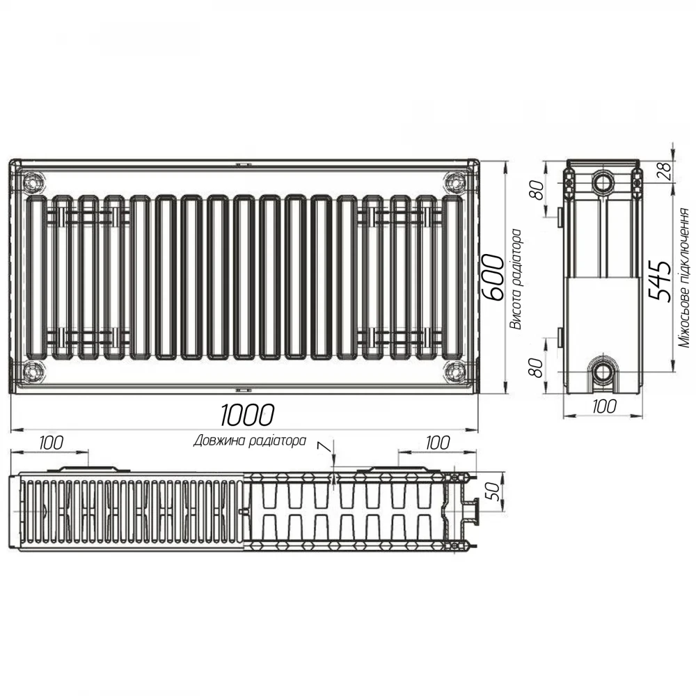 Радіатор сталевий панельний OPTIMUM 22 бок 600х1000