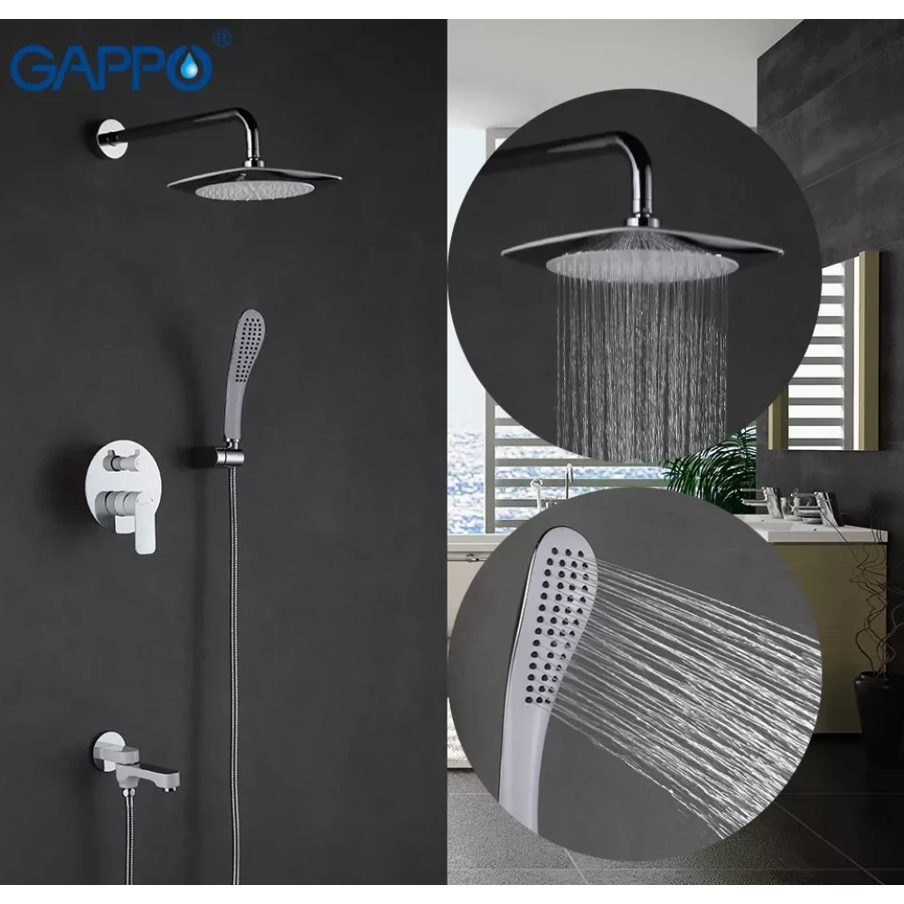Закажите Душевая система скрытого монтажа GAPPO G7148-8 белая/хром с переключателем на лейку 3-функции сейчас и наслаждайтесь комфортом и стилем в вашей ванной комнате!
