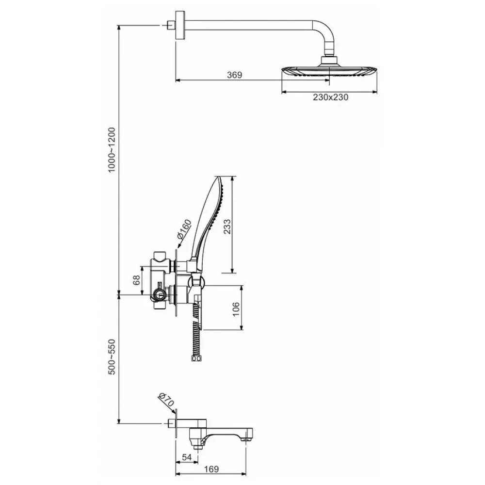 - Установите верхний душ и лейку.
