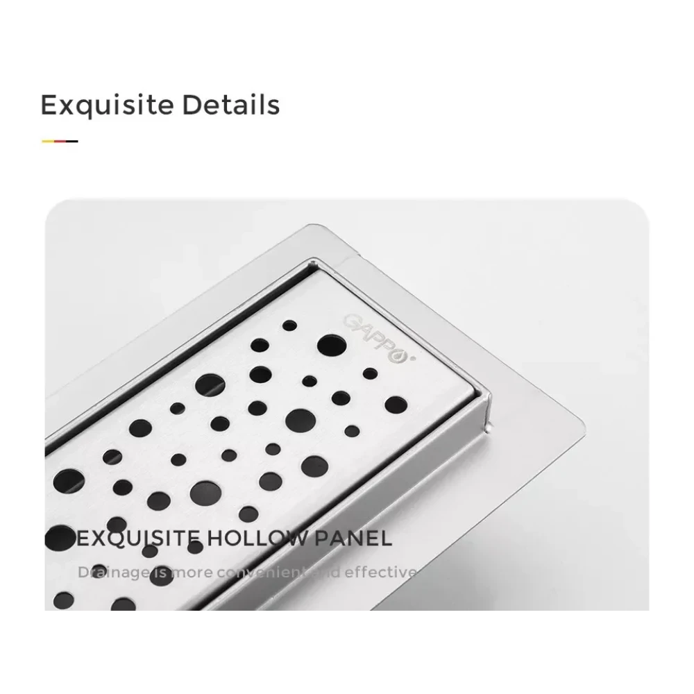 Душевой канал GAPPO G85007-2 идеально подходит для установки в душевых кабинах, душевых зонах без поддона, ванных комнатах в квартирах, частных домах и даже спортивных комплексах. Он может быть использован как при новом строительстве, так и при ремонте существующих ванных комнат. Его минималистичный дизайн позволяет ему гармонично вписаться в любой интерьер, от классического до современного.