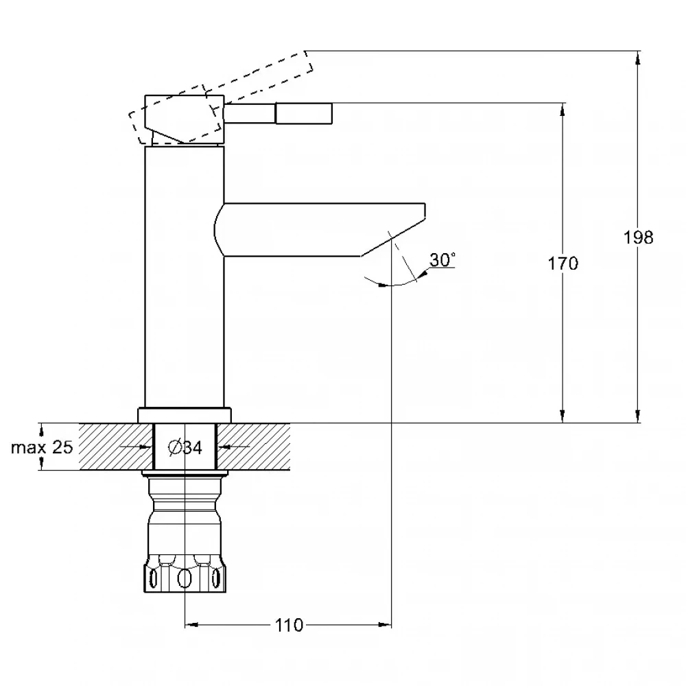 - Использование: Для включения и регулировки подачи воды поворачивайте рычаг в нужном направлении.