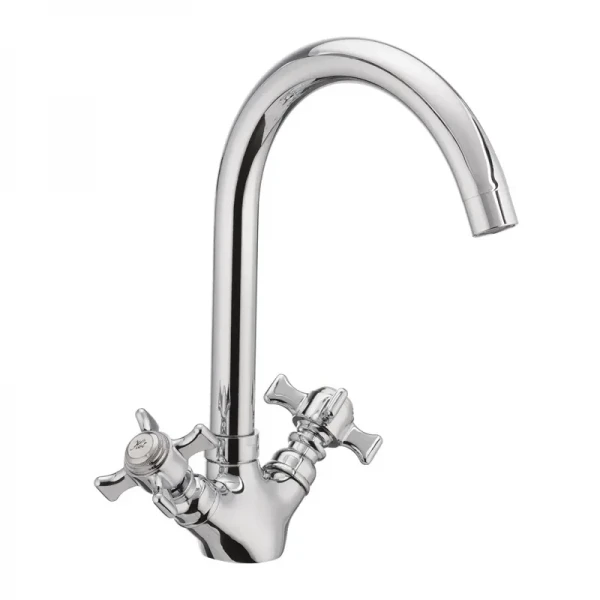 Cron Zeus 275 – это двухвентильный смеситель для кухни, сочетающий в себе классический дизайн и высокую функциональность. Идеальный выбор для тех, кто ценит надежность и удобство в использовании. Корпус смесителя для кухни Cron Zeus 275 (CR0085) изготовлен из прочного силумина, что гарантирует его долговечность и устойчивость к коррозии. Зеркальное хромированное покрытие придает ему элегантный внешний вид, который легко впишется в любой кухонный интерьер. Бренд известен своими качественными и доступными решениями для сантехники.