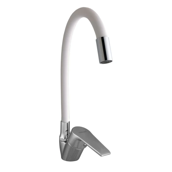 Смеситель для кухни DOMINO BLITZ DBC-203SLR-White, гофроизлив белый, на гайке