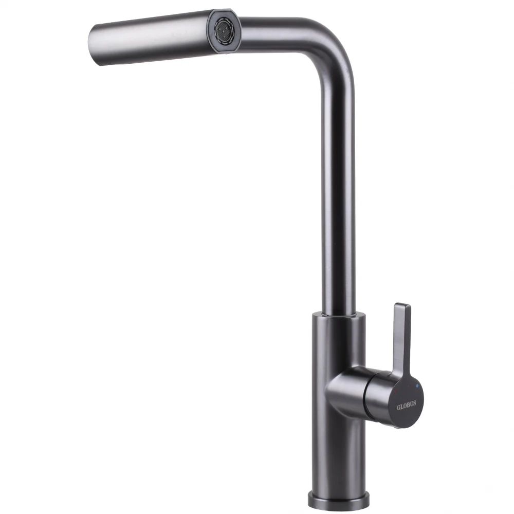 Смеситель для кухни Globus Lux ALPEN SBT1-2044-GP с вытяжной лейкой (4 режима) водопад-душ, цвет-графит