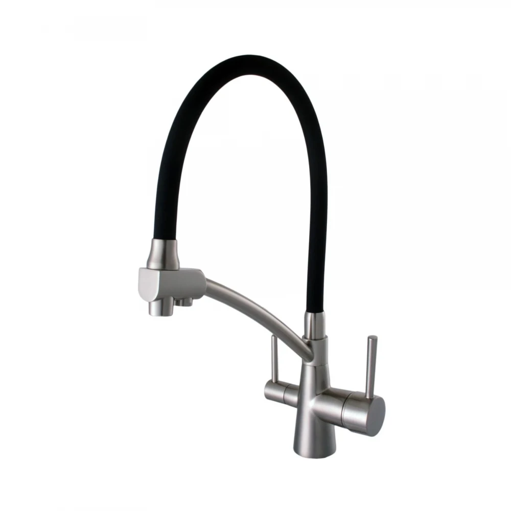 Смеситель кухонный Globus Lux LAZER GLLR-0700-8-STSTEEL, комбинированный под ОСМОС, черный гофрогусак, цвет корпуса-сталь